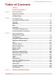 PORTÉGÉ Z830/Satellite Z830 Series Table of Contents Preface General Precautions Chapter 1 Getting Started Equipment checklist ............................................................................. 1-1 Getting Started ....................................................................................... 1-2 Chapter 2 The Grand Tour Front with the display closed ............................................................... 2-1 Left side ..........................................................