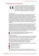 PORTÉGÉ Z830/Satellite Z830 Series EU Declaration of Conformity This product is carrying the CE-Mark in accordance with the related European Directives. Responsible for CEMarking is TOSHIBA Europe GmbH, Hammfelddamm 8, 41460 Neuss, Germany. The complete and official EU Declaration of Conformity can be found on TOSHIBA’s web site http://epps.toshiba-teg.com on the Internet.