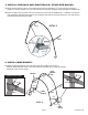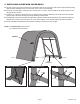 . Door and solid End panel installation A. Hold end panel at the top center with white inner surface facing inside of the shelter. Wrap the edges of the fabric panel around the end rib and pass the rails through the pre made slits in the fabric. B. Disconnect top rail from the end rib. The top cross rail should pass through the slit in the fabric, and be inbetween the webbing and rib frame. Cut slit as needed to get cover tight. Repeat Step B for side cross rails and wind braces. C.