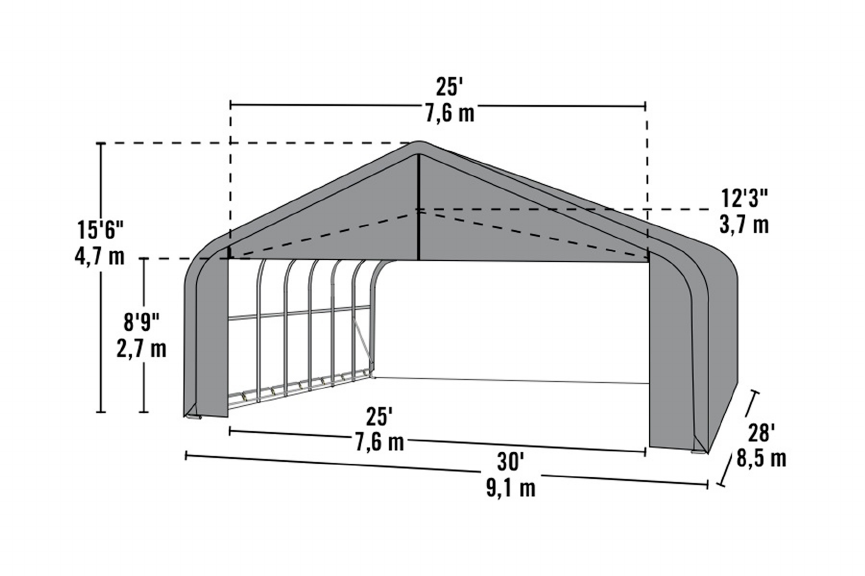 30 ft. x 28 ft. x 16 ft. Green Cover Peak Style Shelter