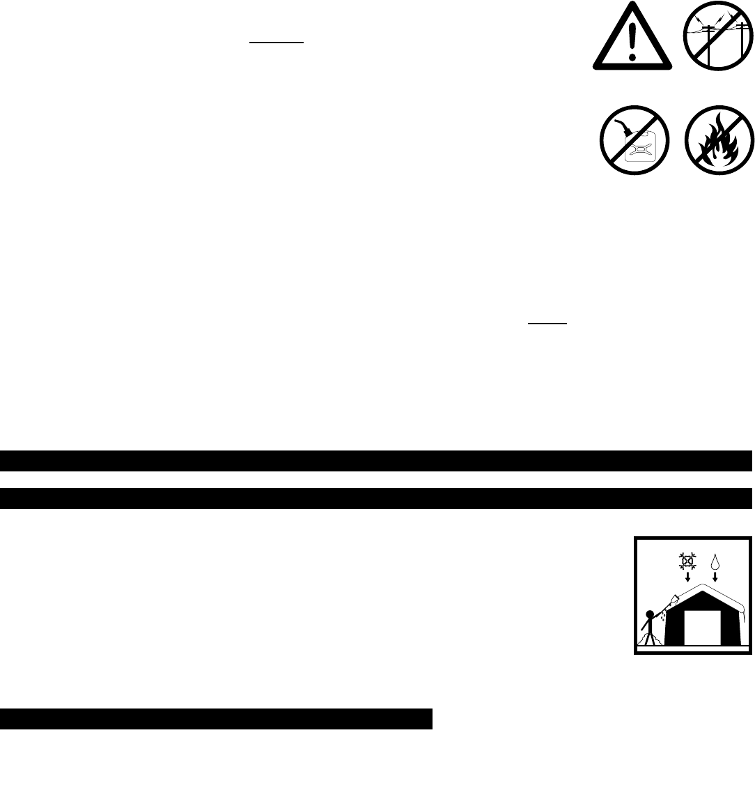 lanterns) in or around the shelter. DO NOT store ammable liquids (gasoline, kerosene, propane, etc.) in