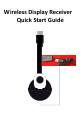 Thank you for buying our wireless display receiver. You can read the manual to get a comprehensive understanding for it and enjoy the actual function and easy operation. Dongle is mainly used to cast the small screen to big screen it can synchronously push the videos, musics, photos, documents and games to TV and projector, suitable for home entertainment, business meetings, education,training and etc.