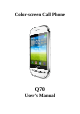 Notice: Your phone supports plug and play. However, you’d better turn off your phone to insert or remove T-flash card when your phone is on. It can ensure the normal usage of the information. Generally speaking, you’d better not insert or remove T-flash card. 5.2 Use of T-flash Card T-flash, which is one kind of phone storages, is set as the default storage. You do not make any setting and use it directly.