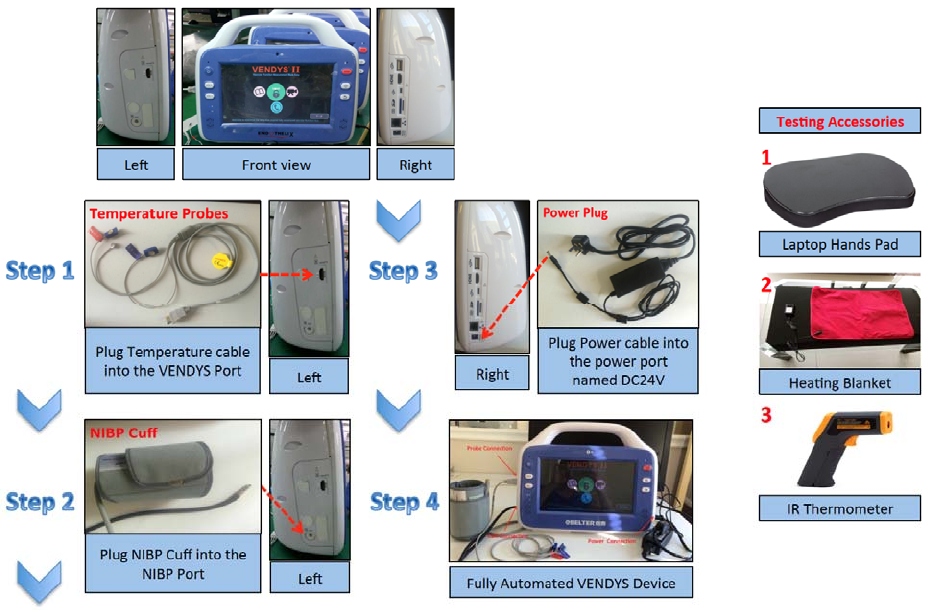 Connect the cuff to the NIBP port on the left side of the VENDYS II machine.