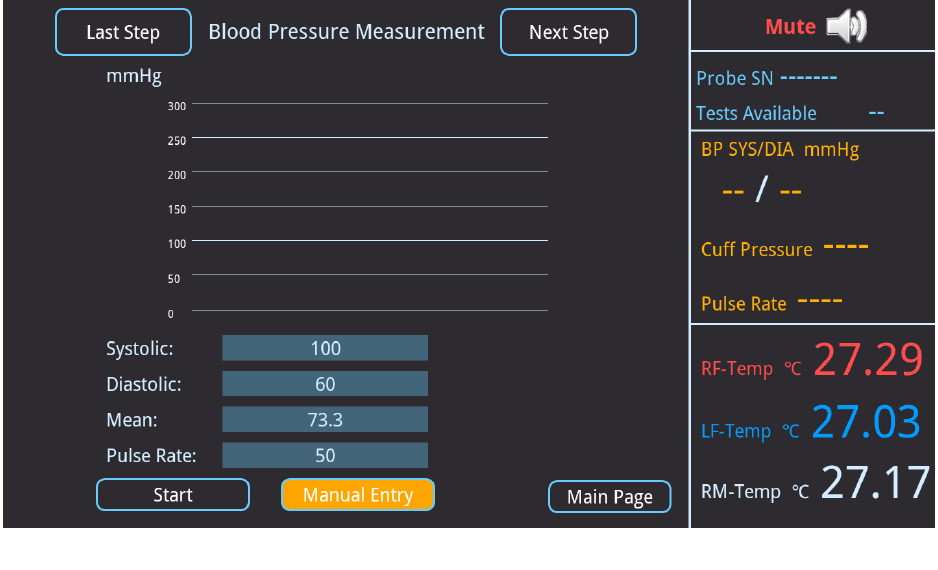 After clicking on the “Start” buttonat the end of the screen, the blood pressure