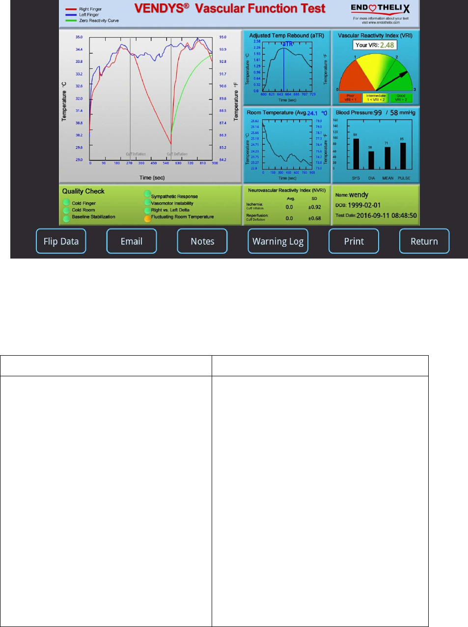 Note: Clicking the Main Page before the VENDYS test is complete will result in