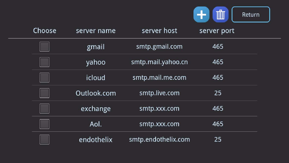 and then pressing on the “Trashcan” button, the selected email server will be