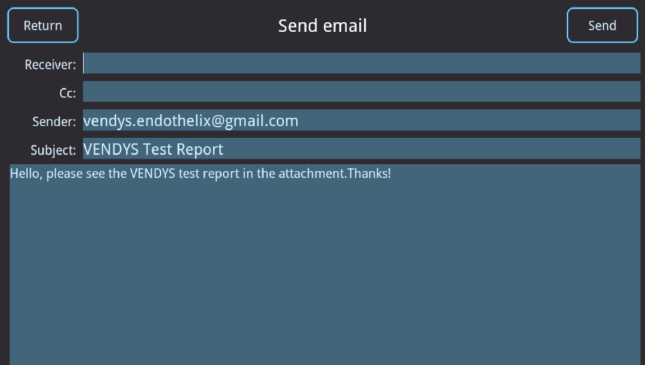 4. Subject: The default subject for this email is “VENDYS Test Report”. You