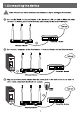 eee A Note: Pleads use wired network connections only to configures the Router. i Connect the WAN port on your Router to the Modem's LAN port with an Ethernet cable. {If thees is no Modem, pla: the incoming cabs directly into the router's WAN port Cablecast Modem £3 ‘Connect your computer to the Port labeled 1-4 on the Router with an Ethernet cable.