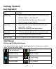 Getting Started Key Explainrd Key Function Power Key • • • Home Key • • Hold to switch audio profiles, or to turn on or off Airplane mode, or to power off. Press to switch your phone to Sleep mode. Press to wake up your phone. Press to return to the Home Screen from any application or screen. Hold to see recently used applications. Menu Key Press to get the options for the current screen. Back Key Press to go to the previous screen. Volume Keys Press or hold to turn the volume up or down.