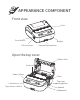 2 APPEARANCE COMPONENT Front view Cutter Reset button USB connector Lanyard hole position Open the top cover Display Rubber roller Printhead Power / Menu Confirmation/ Paper advance button Fixer Top cover opening button Upward Downward