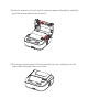 4 PAPER ROLL LOADING 1、Press the top cover open button downward to open the top cover. 2、Install the paper roll as shown in the figure below. ①Open the top cover, move the jammer lock switch forward to OPEN, and insert the paper roll as shown.