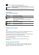 Display Set up display settings, such as brightness, auto-rotate screen, sleep, and more . Battery View the battery status. Storage Check the available space in the internal storage you’re your storage card. •From this screen, be sure to uninstall your storage card before you remove it from the phone. Apps Manage running applications, move applications to or from the storage card, and install or uninstall programs. Location Select the sources to use when determining your location.
