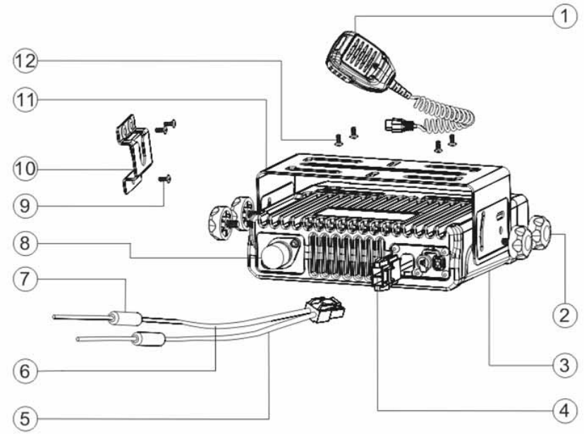 3. Slide the radio into the bracket, and secure it with the Adjust knobs.
