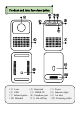 Pr oduct and inter face descr iption (1)Lens (2)Heat sink (3)Power (4)USB (5)HDMI IN (6)Indicator light (7)Infrared probe (8)Earphone port (9)Air inlet (10)Bracket (11)On-off key (12)Focusing roller
