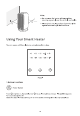 Nita: ® Do not cover the heater with any cloth or covering, especial over the air inlet and outlet. ® Please check the plug and cord perforation for signs of overheating or deformations, Using Your Smart Heater You can access additional features using Roves Home App. sf ell off of o® SIH Panel 1.Button Functions @ Power Button press {1} to power on. sidestepped press {1} to cycle through hast settings |, Wand 1.