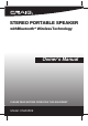 STEREO PORTABLE PORTABLE SPEAK ER withBluetooth WirelessTechnology Owner's Manual PLEASE READ BEFORE OPERATING THIS EQUIPMENT.