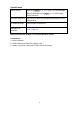 Specification Power Source Built-in DC 3.7V, 400 mAh Li-ion rechargeable battery. Recharge by DC 5V; 300 mA through Micro USB Port Maximum Play time Up to 4 hours after fully charged and playback at 50% volume level BT Effective range Up to 30 feet in open area Impedance of Speakers 3 W; 4 Ohm x 2 SPECIFICATIONS ARE SUBJECT TO CHANGE WITHOUT NOTICE Accessories: 1 x User’s Manual 1 x USB Connection cable (For charge only) 1 x Audio Connection Cable with 3.