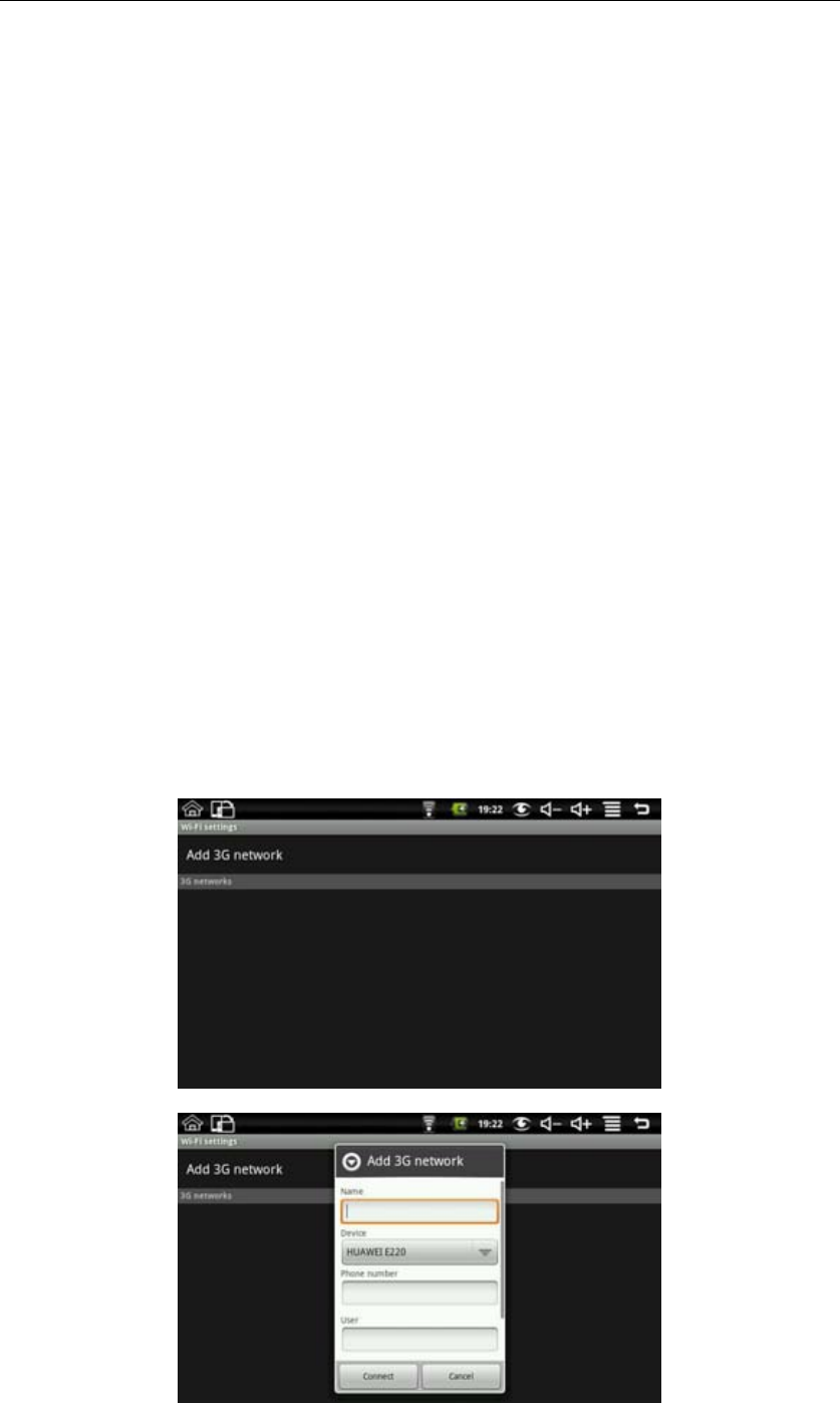 If you want to set up 3G network, please press MENU→ Settings → Wireless controls → 3G