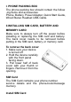I. PHONE PACKING BOX The phone packing box should contain the follow -ing items and accessories: Phone, Battery, Power Adapter, Quick Start Guide, Wired Stereo Headset USB-Cable. II.INSTALLING SIM CARD, BATTERY AND MEMORY CARD Make sure to always turn off the power before installing or replacing the SIM card and battery. The back cover needs to be removed before putting in the SIM card, battery, or memory card. To remove the back cover 1. Make sure your device is turned off. 2.