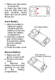 1. Make sure the phone is turned off. 2. Insert the SIM Card into the SIM Card slot gold contacts facing down and cut-off corner facing out. Insert Battery 1. Align the battery’s exposed copper contacts with the battery connectors inside the battery compartment. 2. Insert the contact’s side of the battery first and then gently push the battery into place. 3. Close the back cover. Remove Battery 1. Make sure the phone is turned off. 2. Remove the back cover. 3.
