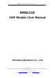 ◢MR6121E UHF reader user manual(Ver 1.0)◣ 4 Contents 1 MATTERS NEED ATTENTION............................................... 6 2 READER INSTRUCTION .................................................... 7 2.1 UHF READER INTRODUCTION ............................................... 2.2 READER INSTRUCTION ..................................................... 2.3 READER APPLICATIONS .................................................... 2.4 READER MAIN FUNCTIONS ..................................................