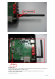 Screw on the antenna Complete Installation Steps: 1.Open the cover,can see the USB connector and antenna installation mouth in the mainboard. 2.Plug the WIFI ADAPTER in the USB connector. 3.Plug the antennaSMA connector in antenna installation mouth,than fasten the screw. 4.connect up the external antenna. 5.installation complete.