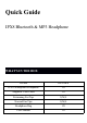 Quick Guide IPX8 Bluetooth & MP3 Headphone WHAT'S IN THE BOX ITEMS DETAILS IPX8 Waterproof Headphone 1X Magnetic USB Cable 1X Swimming Ear Tips S,M,L Normal Ear Tips S,M,L Headphone Bag 1X User Manual 1X