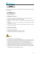 User manual Statement If the user manual doesn’t help you to solve the problem, please call our technology center for technical support. Notice 1. Installation Environment Keep away from the places for high-temperature, heat source and direct sunlight; Keep away from water and if wet, power off immediately. Avoid using in the damp environment; the reference range for operation humidity is below 85%RH.