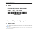 Wireless Repeater KN300 User Guide 1.4 Stickers 2 Use your mobile phone to configure repeater 2.1 Repeater settings Step 1 Plug the repeater into the power socket and wait for the WiFi LED to blink and the repeater is started. Step 2 Use your mobile phone to search for and connect to the wireless network of the repeater: KN300_XXXXXX.