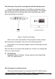 the receiving box Plug one end of the HDMI connector into the display device (projector, monitor) and the other end into the HDMI connector in the receiving box FIG. 5 wiring diagram of receiving box and display equipment Step 2 boot the receiver box Long press the power on key of the receiving box for 3 seconds to start the machine. After starting the machine, the power lamp will show the blue color and the program interface will appear on the screen of the display device (projector, monitor). FIG.