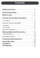 Contents Safety Instructions ......................................................... 1 Product Introduction ..................................................... 1 What You Get ................................................................... 2 Function and operation description ...................... 3 1.At a glance ........................................................................ 3 2.Receiver Indicator Light Status ...................................... 5 3.Charging ............................
