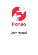 Contents Contents 1 Getting started 4 Frameo app 4 Video tutorials 4 Frameo quick setup 5 Start using Frameo 6 Connecting a new friend 6 Navigating your Frameo 7 Add friend 7 Settings 7 Power menu 7 React 7 Hide photo 7 Gallery 7 Fit to frame/Fill frame 7 Adjust photo 8 Interacting with videos 8 Power menu 9 React menu 9 External storage menu 9 Settings 10 My frame 10 Frame name 10 Frame location 10 Set language 10 Date 10 Time 10 Time zone 10 1