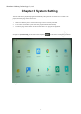 Shenzhen Yidaheng Technology Co., Ltd. Chapter 2 Product Specifications 2.1 Specifications Specifications Screen parameters Size Zoom 43 Inch(Touch) 16:9 Display area 939.4mm(H) *527.6mm(V) Overall size 1787mm*603.4mm*73.