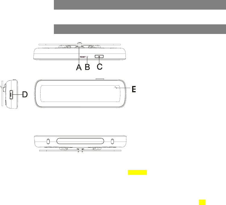 D. Micro USB port- Connects to Micro USB cable for charging.