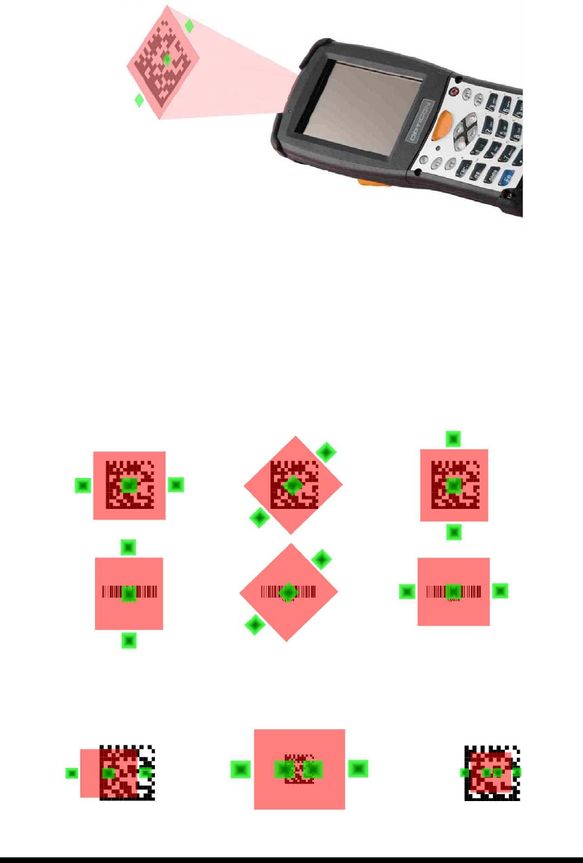 5. Aim the scanning beam at the center of bar code. To assists in aiming, there are