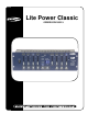 Description of the device Features The Lite Power Classic is a four channel multi-function chasing powerpack. • 4-Channel-DMX/MIDI-Pack • Load of 5A per channel with a maximum of 16A total. • Fade time control • 4 individual Faders and 1 Master-Fader • 4 Flash-Buttons, Full-On & Standby (Priority) • 42 pre-set Chases with controllable Chase-speed • 7 Modes: Hold Dimmer / Hold Sound / Prog Sound / Prog Speed / Auto Speed /Auto Sound / Memory.