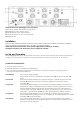 50319IEC Lite-Power (mit Bulgin + IEC connectors) 1) AC Input:; Plug in appropriate power supply. 2) Audio Input: Line in 100mV-1Vpp 3) Channel Fuse: F6.3A 250V 5x20mm. 4) Channel Output: 2A /CH., 8A /Total (CE) 5) Bulgin Output Installation Remove all packing materials from the Lite Power Classic. Check that all foam and plastic padding is removed. Screw the equipment into a 19" rack. Connect all cables. Always disconnect from electric mains power supply before cleaning or servicing.