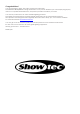 Showtec Showtec LED Operator 1™ Product Guide Warning.................................................................................…...……………..…………………………….………..… Safety-instructions……………………………………………………………………………………………………….. Operating Determinations.……………………………………………………………………………………………. Return Procedure……………………………………………………………………………...................................... Claims……………………………………………………………………………......................................................... 2 2 3 4 4 Description..…......................