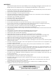 IMPORTANT: The manufacturer will not accept liability for any resulting damages caused by the nonobservance of this manual or any unauthorized modification to the device. Never let the power-cord come into contact with other cables! Handle the power-cord and all connections with the mains with particular caution! Never remove warning or informative labels from the unit. Never use anything to cover the ground contact.