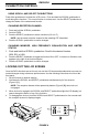 ENGLISH BATTERY INSTALLATION 1. Open the battery compartment door by pushing down and sliding towards antenna. 2. Insert a fresh 9V alkaline battery with the +/– terminals properly positioned (see Figure 2). 3. Close the battery compartment door. NOTE: If battery compartment door will not close, the battery is not properly inserted. FIGURE 2 LCD SCREEN The LCD screen on the top panel displays the status of various functions.