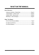 TABLE OF CONTENTS WHAT'S IN THE MANUAL .................................................................... 4 Quick Reference ............................................................................................... 4 About This Manual ........................................................................................... 4 1 INTRODUCTION ................................................................................ 5 1.1 TO DIFFERENT USERS ......................................................