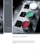 An overview of the product portfolio Body design lines and button colors Black plastic, 22 mm Ø Shiny metal, 22 mm Ø Plastic, matte metal front ring, 22 mm Ø Push buttons Matte metal, flat, 30 mm Ø Emergency stop Push button raised front ring Sensor switch Push button extended stroke Push button momentary contact/ latching Stop button Mushroom push button latching, pull to unlatch Twin push button Mushroom push button momentary contact/latching Toggle switch Selector short handle Push butto