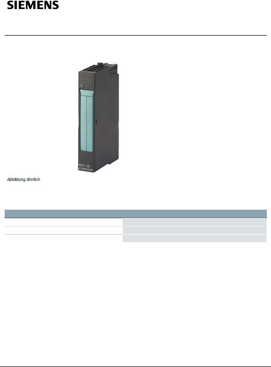 6ES7138-4CA50-1AB0 Änderungen vorbehalten