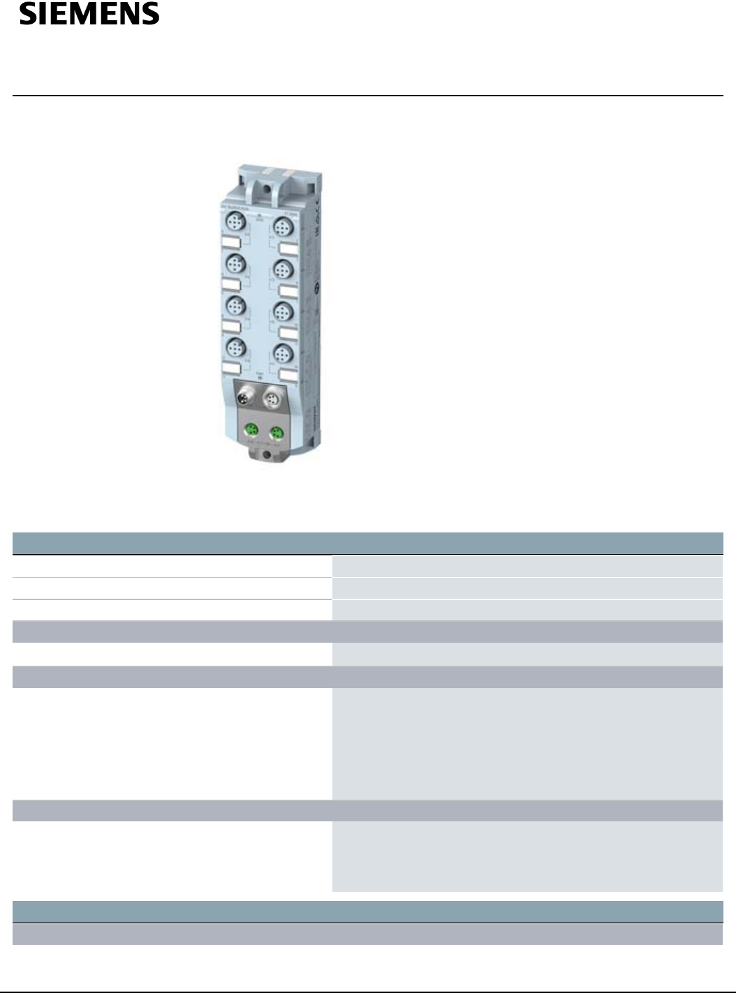 SIMATIC ET 200, DIQ 16x24VDC/0,5 A, 8x M12, Grado de