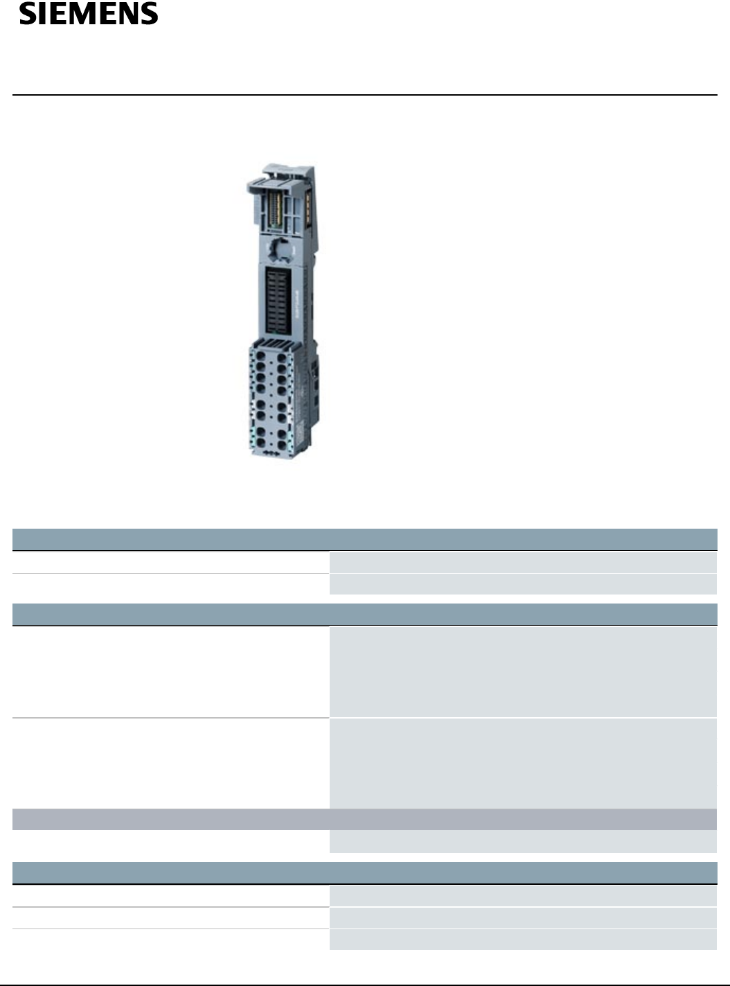 产品类型标志 ET 200SP,基座单元类型 B0,PU 1
