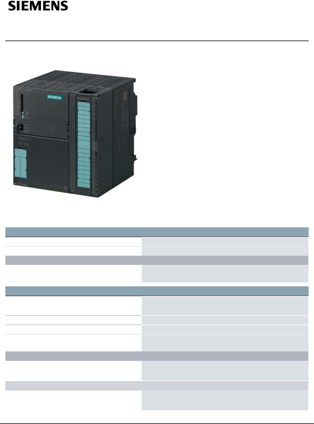 Hoja de datos 6ES7315-7TJ10-0AB0 SIMATIC S7-300, CPU 315T-3 PN/DP, Módulo central para tareas de PLC y tareas tecnológicas, memoria de trabajo de 384 kbytes, 1.ª interfaz MPI/DP 12 Mbits/s, 2.ª interfaz DP (Drive), 3.ª interfaz Ethernet PROFINET con switch de 2 puertos, E/S integradas para tecnología, conector frontal (1 x 40 polos) y Micro Memory Card de 8 MB mín. necesario Información general Versión funcional del HW 01 Versión de firmware CPU: V3.2; funciones tecnológicas integradas V4.1.