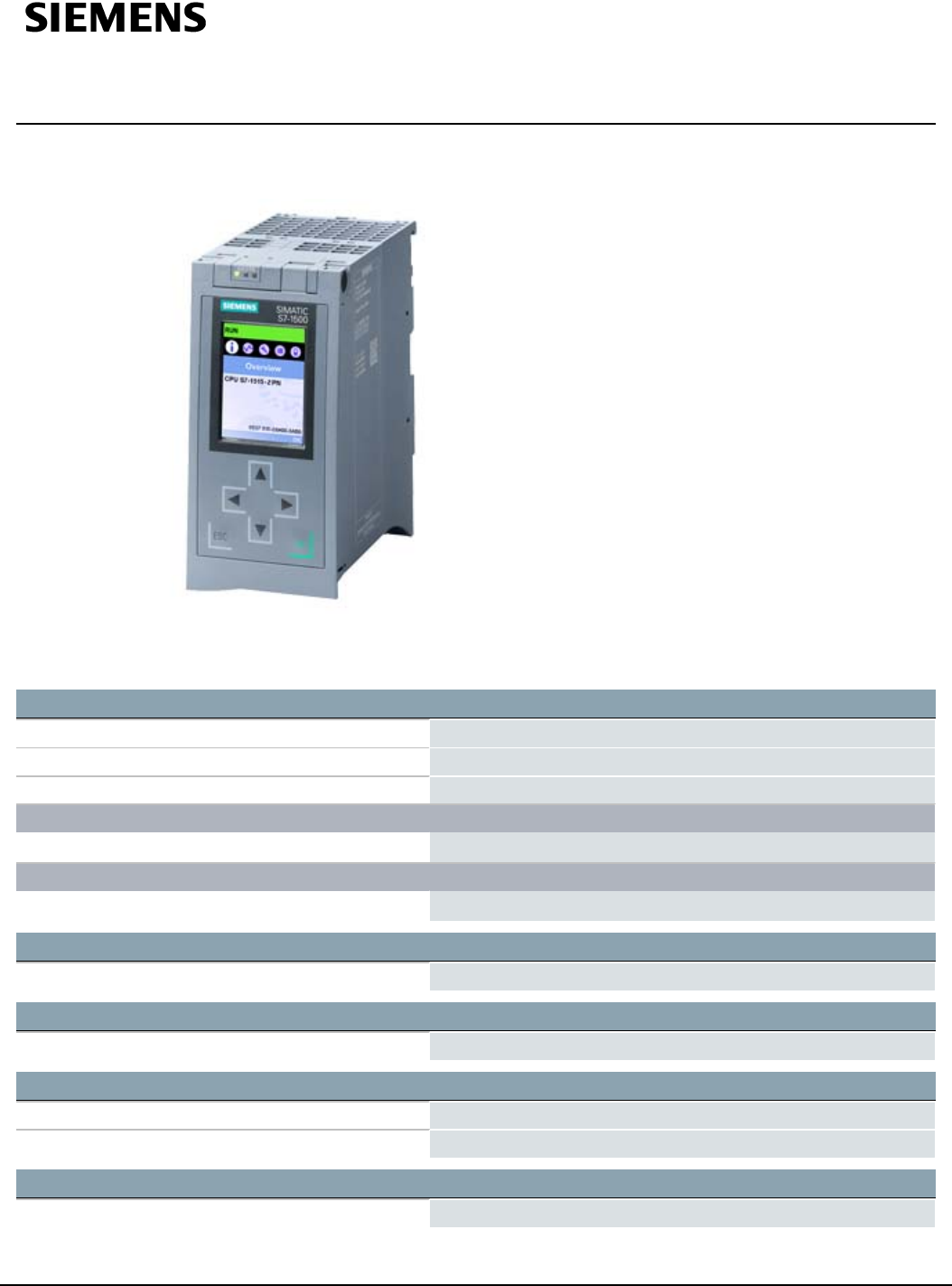 SIMATIC S7-1500, CPU 1515-2 PN, 中央处理器,带 内存 500