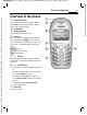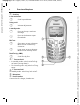 right page (3) of A57 Jaguar, short, en, A31008-H5830-A1-2-7619 (24.06.2004, 06:22) Siemens AG 2003, C:\Projekte\Siemens\10210-001\A57\Produkt\A57_sug_v2_en_040519_bw_pk_druck\Jaguar_Overview.fm Overview of the phone 1 Integrated antenna Do not interfere with the phone above the battery cover unnecessarily. This reduces the signal strength. 2 3 Loudspeaker Display indicators Signal strength/battery level.