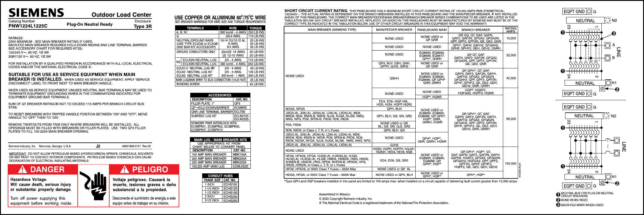 PN Series 225 Amp 12-Space 24-Circuit Main Lug Plug-On Neutral Load Center Outdoor